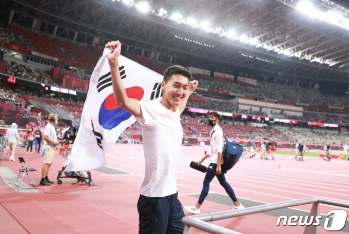 도쿄 로이터=뉴스핌 박성준 인턴기자 = 30일 도쿄 올림픽 스타디움(신국립구장)에서 열린 2020 도쿄올림픽 육상 남자 높이뛰기 예선에서 우상혁은 2m28을 넘어 전체 9위로 결선 진출에 성공했다 우상혁. 우상혁은 결승에서 그 벽을 뛰어넘으려 합니다.